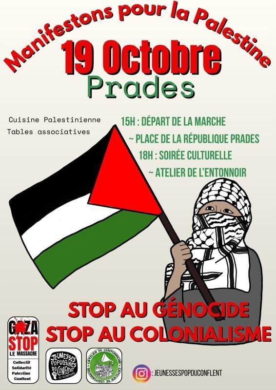 - 18h : Soirée Palestine à L’Entonnoir (1, rue des Marchands), avec lecture de poèmes et musique palestiniennes - suivies d’un repas palestinien