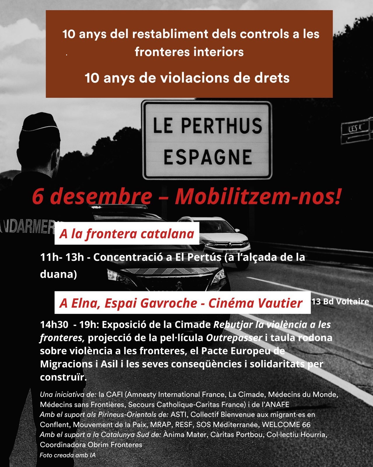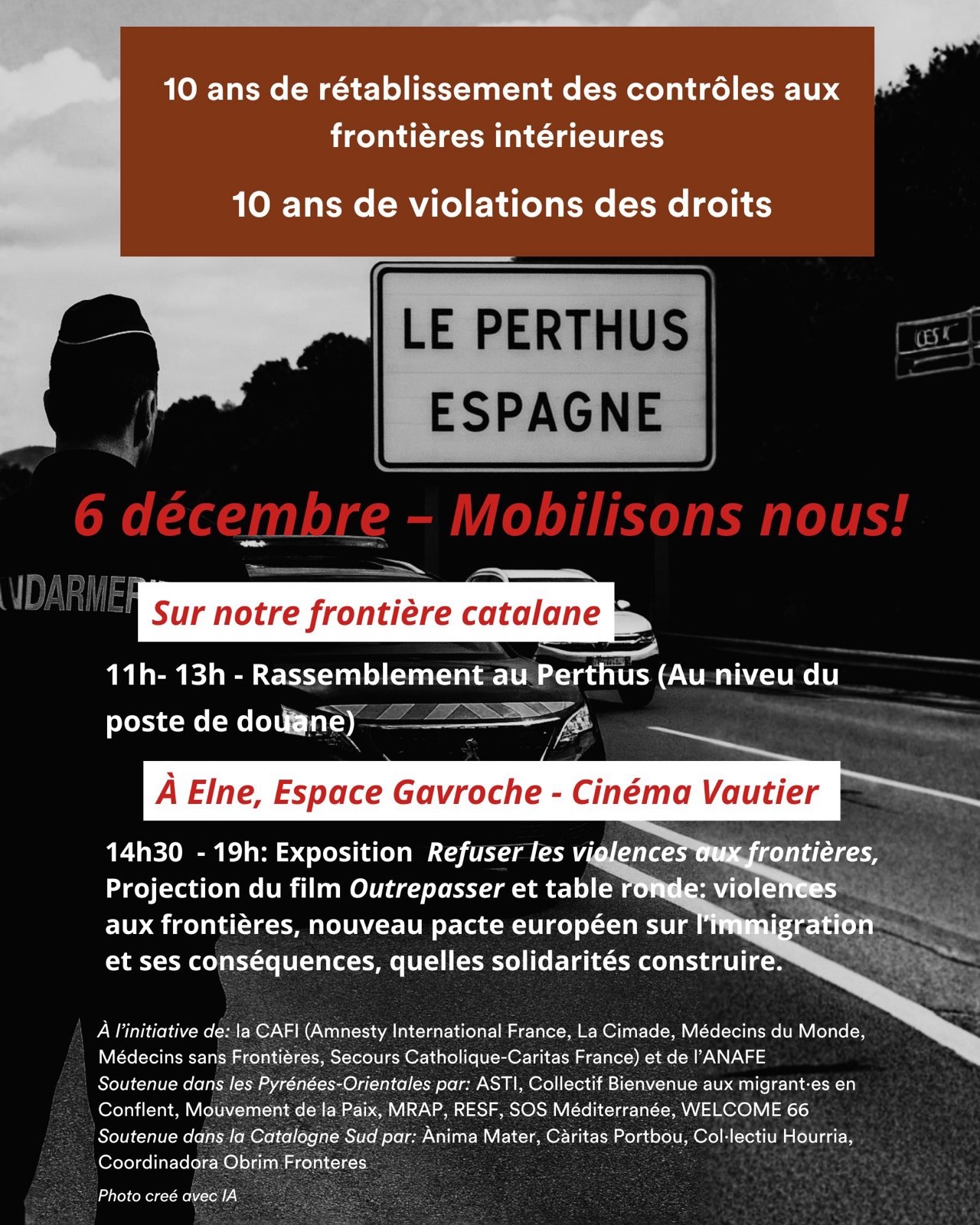 Dans le cadre de l’initiative nationale portée par les associations de la CAFI (Coordination des actions aux frontières intérieures) et par l’ANAFE, nos associations appellent à une journée de mobilisation sur toutes les frontières intérieures avec la participation de militant·es solidaires des deux côtés de nos frontières.